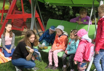 Program pro děti probíhal z větší části na zahradě v Emauzích. Pro menší děti byl letos zpestřen loutkovým divadlem s velmi dobrým a výchovným provedením manželů Krejcarových – pohádka o Karkulce, příběhy, hádanky... O školáky se opět, jako v minulých letech, skvěle postarala znojemská mládež se svým kaplanem P. Ladislavem. Bůh nám daroval pro tento den krásné počasí, za což jsme všichni s vděčností poděkovali při adoraci, kterou byla duchovní obnova zakončena.