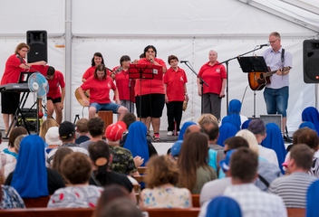 Po mši svaté proběhla v novém společenském sále vernisáž obrazů šlechtických majitelů a významných osobností našeho zámku. Po obědě se mohli všichni hosté zúčastnit společného programu Domova a kongregace, který probíhal na různých místech zámeckého areálu – uvítání vzácných hostů s hlubokým proslovem hraběte Franze Ferdinanda von Hoyos, vystoupení Zámecké kapely, přehlídka dobových kostýmů, cimbálová muzika Notečka ve sklepení zámku, svezení na koních, bazén a trampolína pro veřejnost, jarmark…