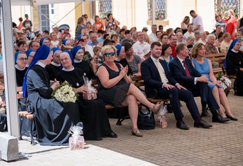 Tento slavnostní den byl zahájen mší svatou v klášterní kapli, jejímž hlavním celebrantem byl brněnský biskup Mons. Vojtěch Cikrle spolu s dalšími kněžími. Velmi nás potěšila hojná účast lidu a také přítomnost naší generální představené a spolusester ze čtyř zahraničních provincií. Rovněž nám bylo ctí poprvé u nás přivítat hraběcí rodinu von Hoyos z Německa – přímé potomky rodu Wamboltů, kteří v roce 1926 prodali zámek naší kongregaci. Všechny nás oslovilo jejich noblesní, ale zároveň velmi srdečné a skromné vystupování.