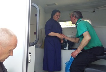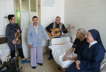 Návštěva hospitalizovaných bezdomovců, pomoc při zajišťování hygieny, rehabilitace, doprovod při umírání. Nabízíme jim službu ucha, půjčujeme literaturu, na svátky jim připravujeme program a drobné dárky. Prostřednictvím místní charity spolupracujeme na výdeji stravy bezdomovcům v prostorách železniční stanice, kde je podle potřeby i ošetřujeme. Během velkých svátků tam přicházíme i s knězem, abychom je duchovně povzbudili, a připravujeme pro ně program.