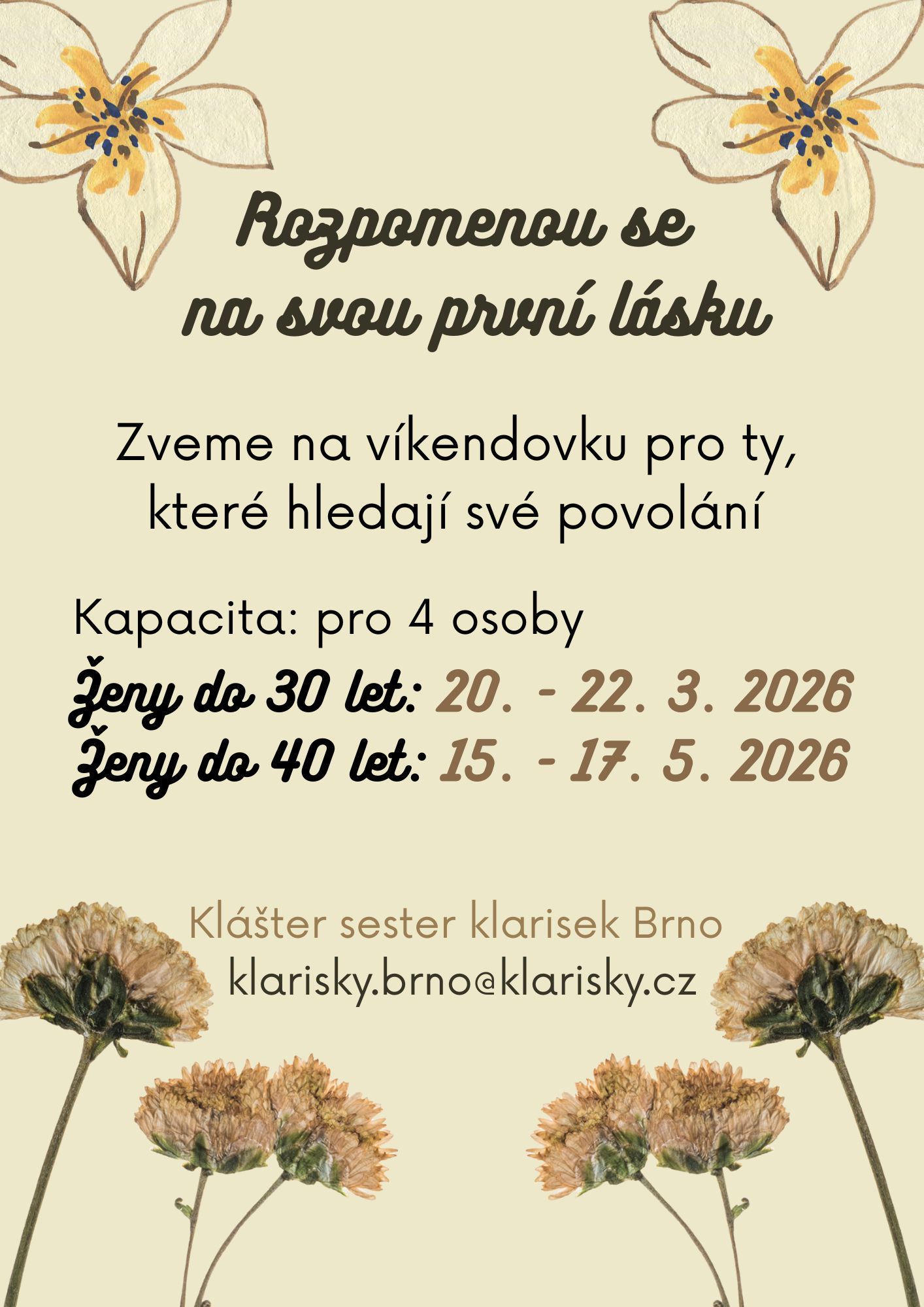 Víkendovka u klarisek v Brně pro ženy do 30 let