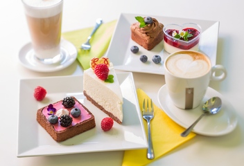 Klášterní kavárna nabízí kávu, vlastní koláče, dezerty a zákusky. Jeden z nich Špaldový dortík s kandovanou mrkví získal v kategorii cukrářských výrobků taktéž ocenění Regionální potravina.