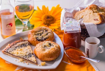 V kavárně si také můžete zakoupit vlastní klášterní produkty - džemy, mošty, vína a trvanlivé pečivo.